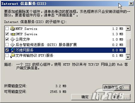 IIS 6.0在Windows2003服务器的四种版本“企业版、标准版、数据中心版和Web版”中都包含有,它不能运行在Windows XP、2000或NT上。除了本文开头介绍的Windows 2003 Web版本以外,Windows 2003的其余版本默认都不安装IIS;其跟以前IIS版本的差异也可谓很大,比较显著的就是提供POP3服务和POP3服务Web管理器支持。另外,在windows2003下的IIS安装可以有三种方式:传统的“添加或删除程序”的“添加/删除Windows组件”方式、利用“管理您的服务器”向导和采用无人值守的智能安装。