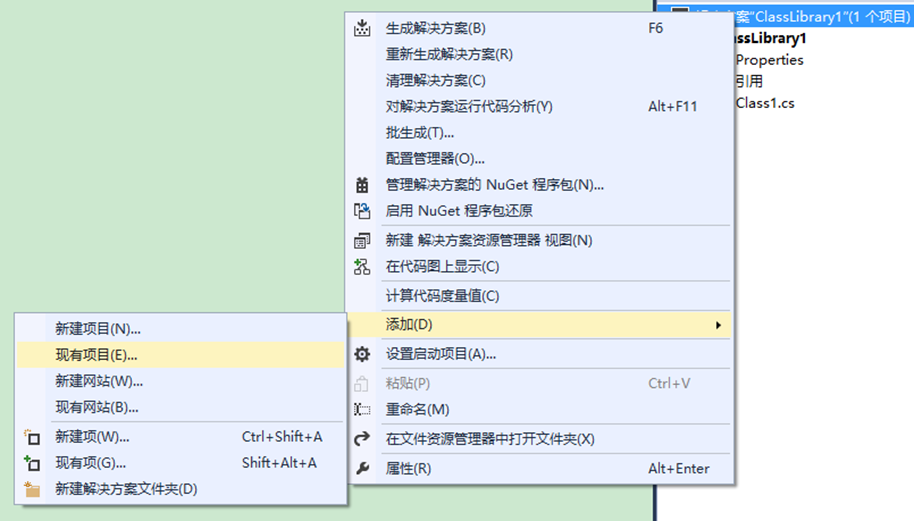 右键单击Solution Explorer,选择添加->现有项目,浏览到AutoCAD的启动文件Acad.exe