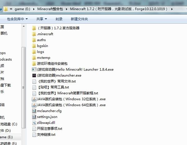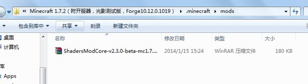 (注意:原版的1.7.2是没有“mods”这个文件夹的,需要安装了API才有)
