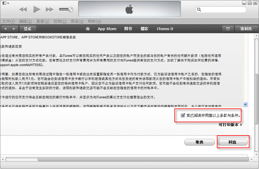 5.先勾选“我已阅读并同意以上条款与条件”,再点“同意”。