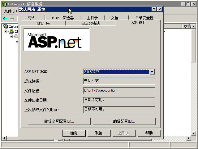 在 IIS 安全控制台(IIS 6.0 或更高版本)中启用 ASP.NET。
