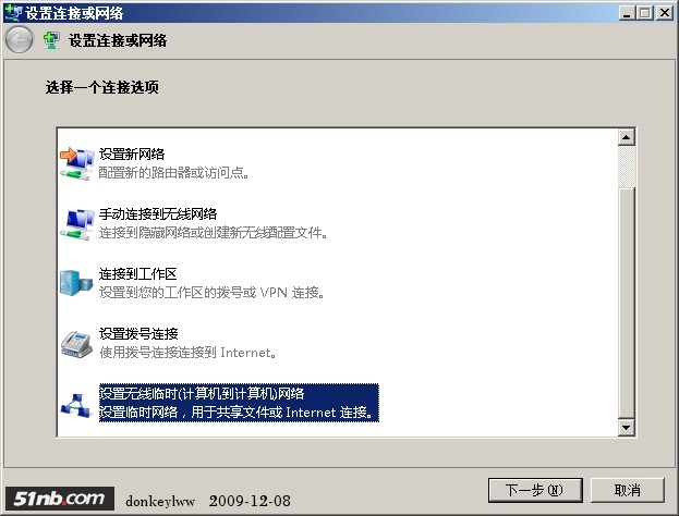 2、用x41t建立主机:打开‘网络和共享中心’,点击‘设置新的连接或网络’,如果无线网卡是活动的,则会在最下边有一项‘设置无线临时(计算机到计算机)网络’