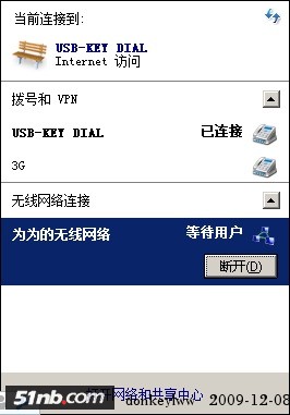 到这里并没有完,一定要把3G拨号连接设置共享,不然只能组成一个没有Internet连接的无线局域网