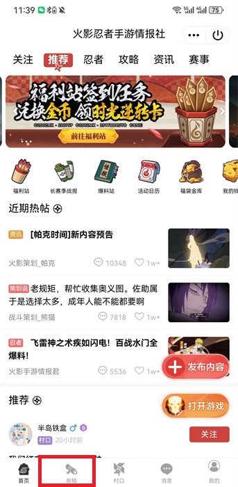 1、在QQ小程序界面搜索【火影忍者手游情报社】找到该小程序打开进入其中,如果你的游戏是以QQ登录的,才能使用;