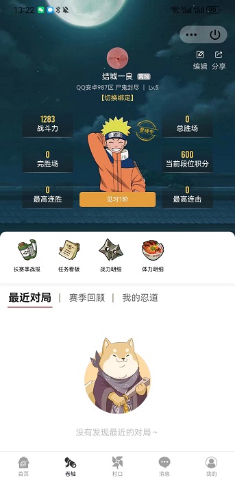 4、需要确保的是明白自己的游戏中账号是用什么登录的,比如QQ或者是微信,如果是微信,就需要用微信小程序中的【火影忍者手游情报社】才能绑定微信账号;