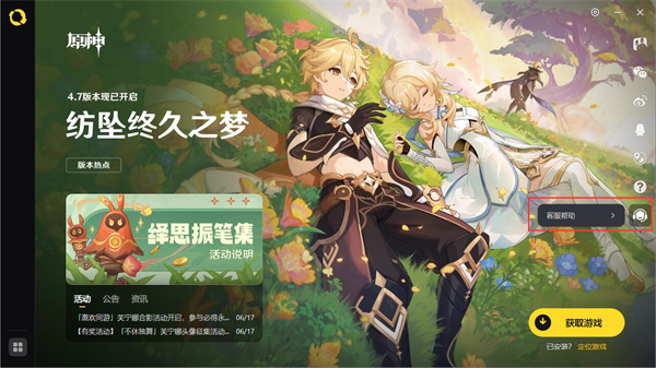 A:请通过“启动器任一游戏界面-右侧边栏的最下方‘联系客服’按钮-进入客服大厅”,进行启动器问题反馈。