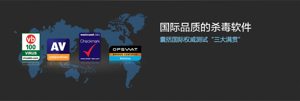 AV-C、VB100、Checkmark,国际安全评测"三大满贯"全部囊括。2011年,360杀毒还成为"杀软世界杯"AV-C中的国产软件代表。